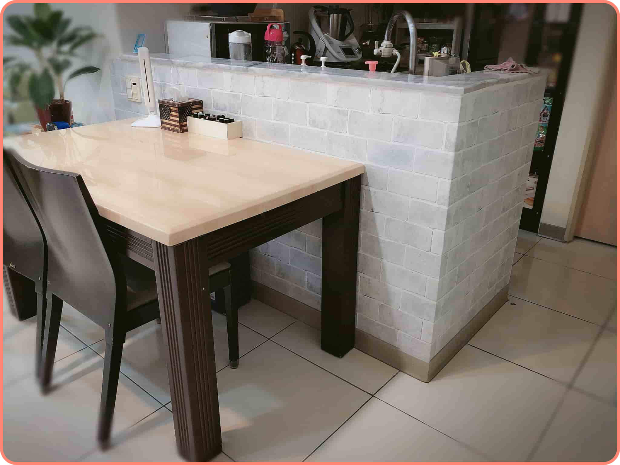 改造空間:飯廳改造光源:白光改造好物:歐ㄋ一ˋ壁紙-工業灰磚