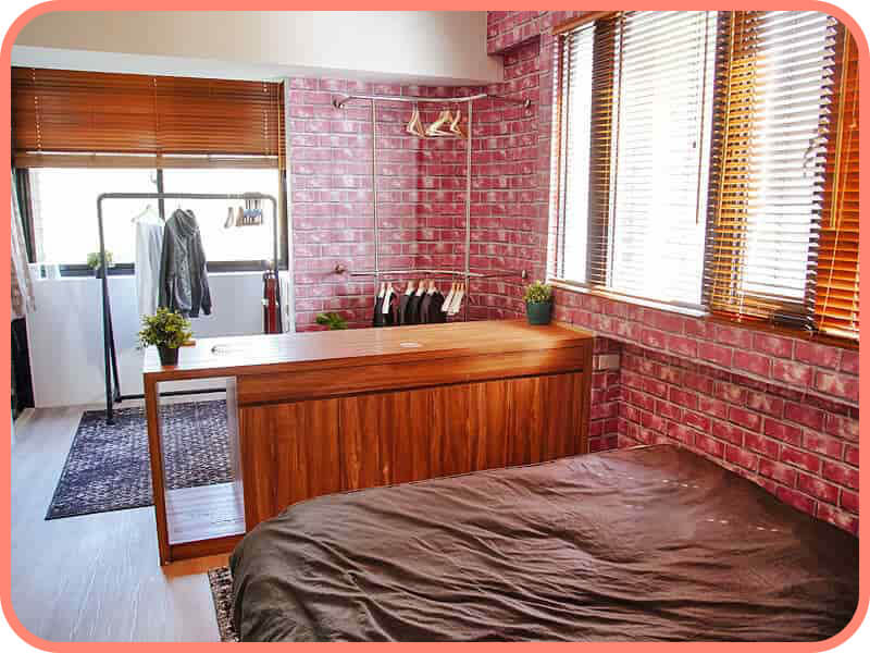 改造空間:臥室改造光源:自然光改造好物:歐ㄋ一ˋ壁紙-復古紅磚