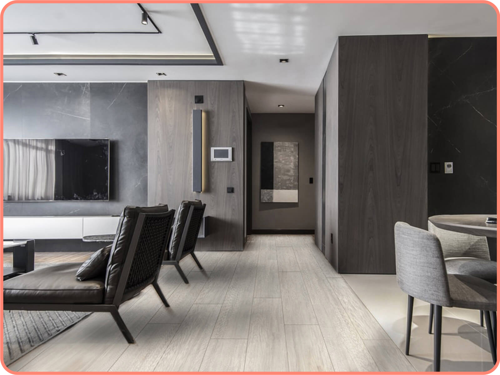 「現代白栗地板」的白色系帶有一點灰的特色,為空間帶來了一種清新、現代的風格轉變,使整個空間散發出一種明亮且時尚的氛圍。讓空間的風格瞬間轉變為簡約、乾淨,營造出一個充滿輕盈與空曠感的居住環境,展現出現代生活的優雅與時尚。/span>