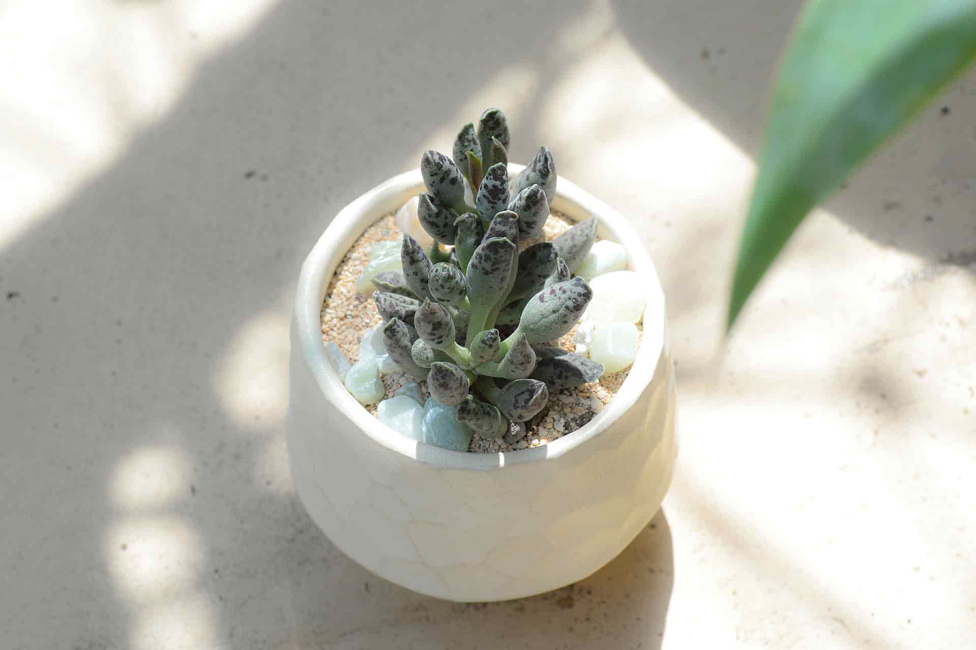 「五十鈴玉」,番杏科多肉植物,整株植物摸起來如蒟蒻般有彈性,顏色淡綠,頂部有透明的「窗」,供植物行光合作用,最健康的型態是以挺拔的群生方式向上生長... 更多↓