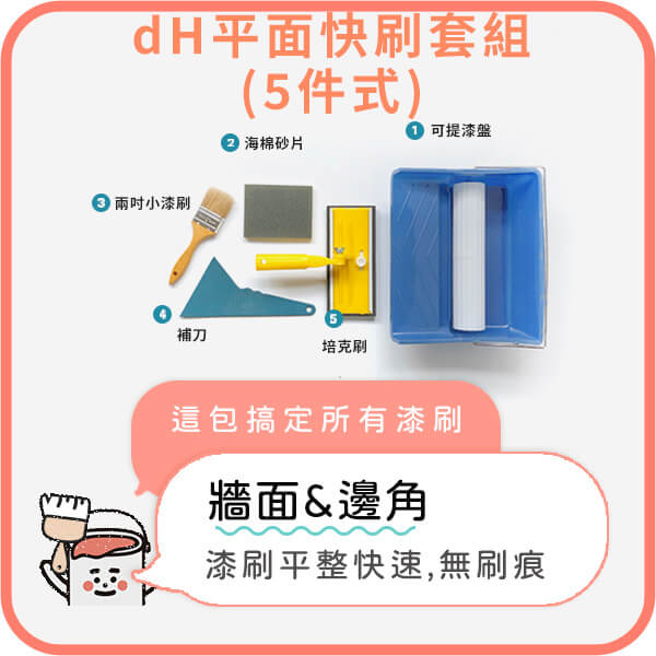 品牌案例 規格:可提式滾軸漆盤x1、八吋可調培克刷x1、進口砂片x1、2吋漆刷x1、7號塑膠補刀x1