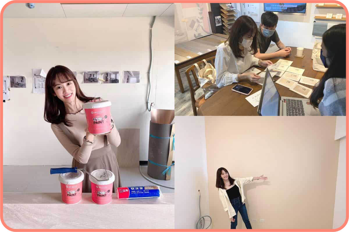這次新屋改造選擇dH的油漆。一進到實體展間就感覺到是一群年輕的團隊品牌,現場規劃師人超好,任何問題都可以提出來詢問。展示間的擺設跟空間都很有趣味還有很多色卡提供參考呢!