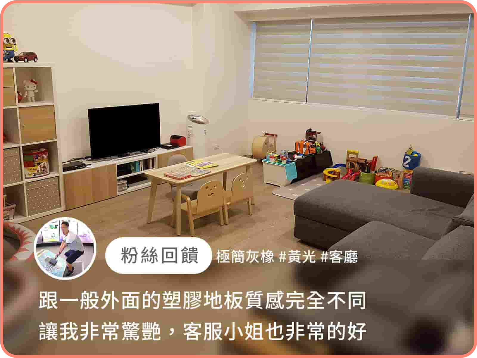 粉絲回饋:「跟一般外面的塑膠地板質感完全不同讓我非常驚艷,客服小姐也非常的好。」