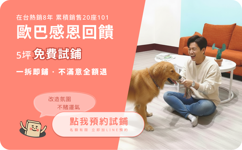 註2:由於歐巴地板紙材尺寸磅數規格較為特殊,因此若自行拆封後有退換貨需求,將酌收來回重新包裝費用