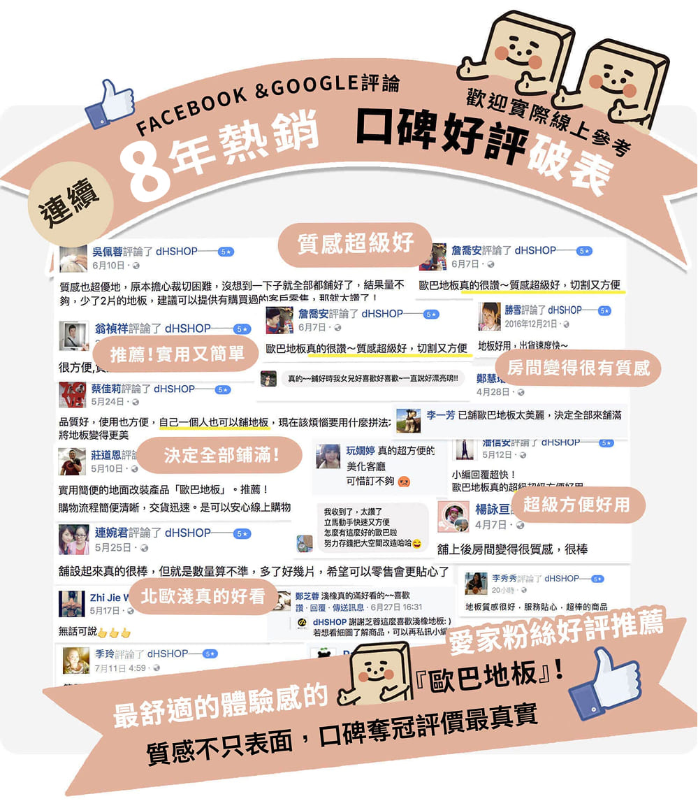 註1:歐巴地板紙箱有貼心設計,箱子上有開口,可在不拆封的情形下看到花色以及摸到材質